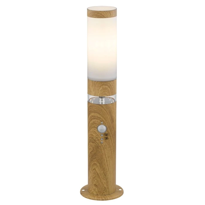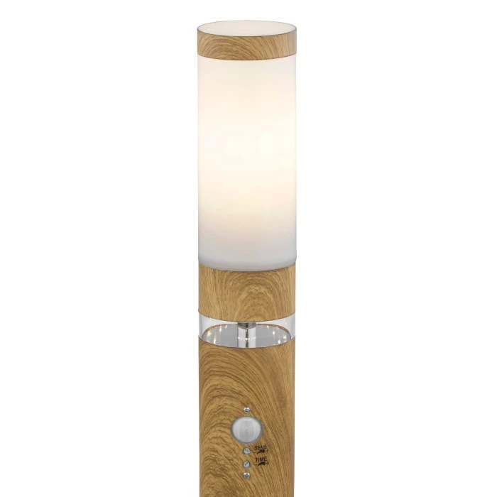 Diese Außenlampe aus der Jaicy-Serie (ø 11,7 cm) überzeugt durch ihr stilvolles Design aus Edelstahl in Holzoptik. Die 50 cm große Außenleuchte besteht aus einem zylinderförmigen Edelstahlzylinder, welcher über einen klaren Kunststoffring und einen inkludierten Bewegungsmelder verfügt. Oberhalb des Rings kann die Außenlampe mit einem E27-LED-Leuchtmittel Ihrer Wahl bestückt werden, welches dann von opalenem Kunststoff bedeckt wird. Dadurch haben Sie die Möglichkeit, Lichtfarbe und Helligkeit individuell zu bestimmen. Durch weitere Modelle der gleichen Serie können Sie in Ihren Außenbereich für ein stimmungsvolles Ambiente sorgen.