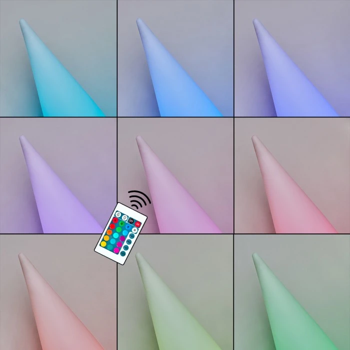 Diese Leuchte verfügt über eine Fernbedienung und einen damit verbundenen Farbwechsler.