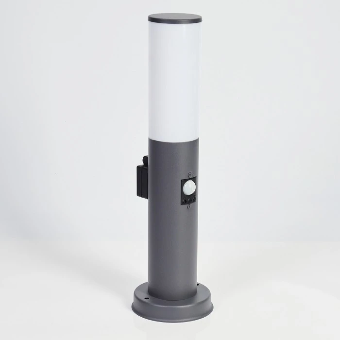 In diese Leuchte ist eine Steckdosen mit Schutzabdeckung integriert.