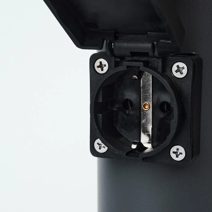 Zudem ist in dieser Leuchte eine Steckdose mit Schutzabdeckung integriert.