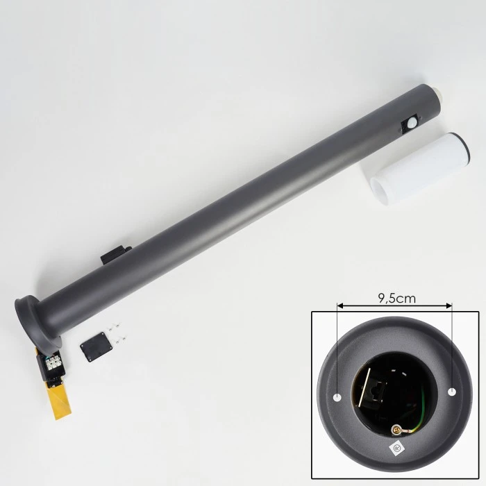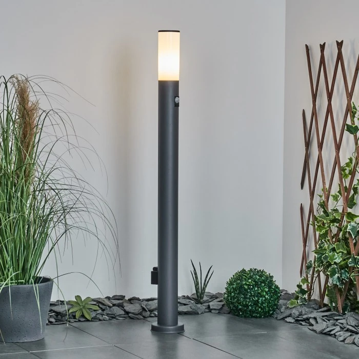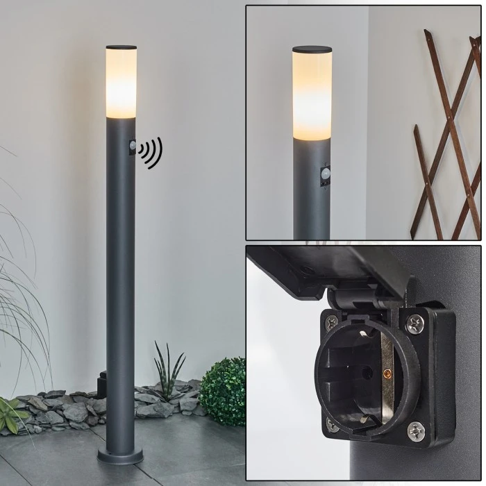 In diese Leuchte ist eine Steckdose mit Schutzabdeckung integriert.