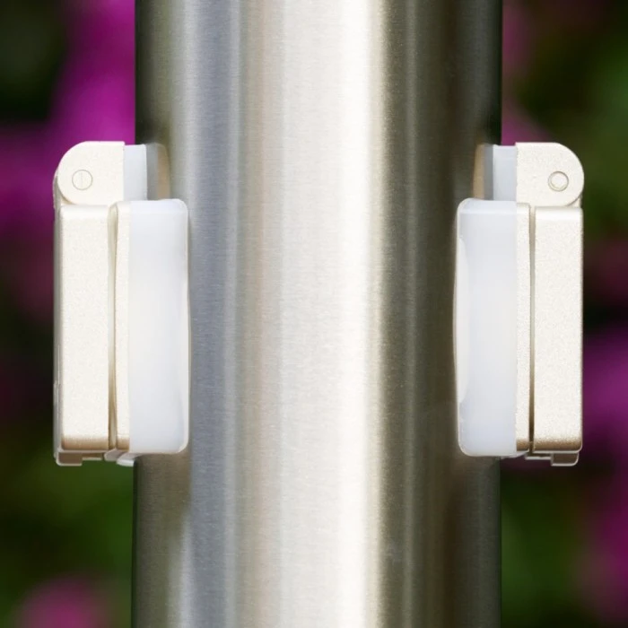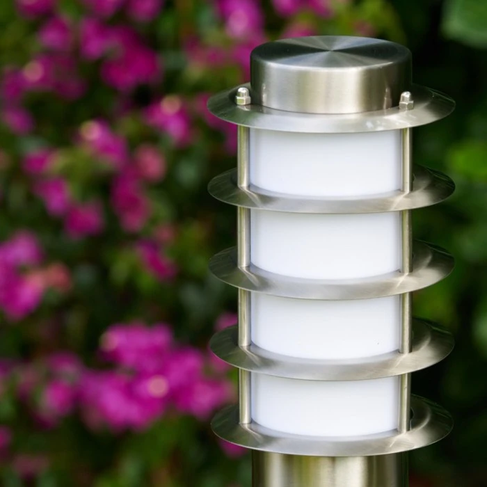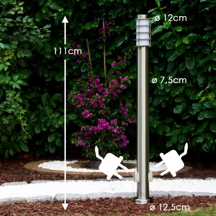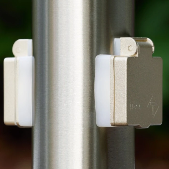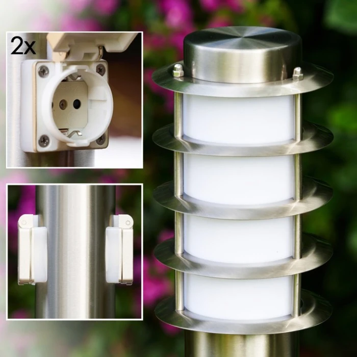 Diese Wegeleuchte ist mit zwei Steckdosen ausgestattet.