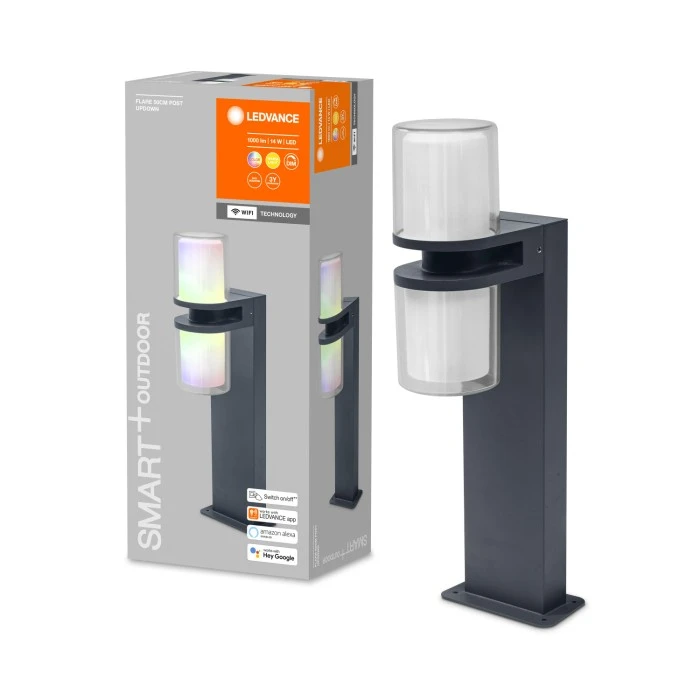 Smart Home-Leuchten. Produkteigenschaften. Steuerbar über LEDVANCE SMART+ WiFi App (mit mindestens Android 4.4 oder iOS 9.0). Steuerung über Google Assistant oder Amazon Alexa möglich. RGB-Farbsteuerung, ca. 16 Mio. Farbmöglichkeiten einstellbar. Dimmbar. Farbtemperatur: 3.000 K (Warm White). Netzwerkprotokoll: WiFi. Schutzart: IP44Produktvorteile. Einfache und schnelle Installation. Farbenreiche Gartenbeleuchtung mit smarten SteuerungsmöglichkeitenAnwendungsgebiete. Allgemeinbeleuchtung. Gärten. Terrassen, Balkone. Technische Ausstattung. Inklusive Montageschrauben und Dübel. Steuerung über App oder Sprachsteuerung erfordert kompatibles Smart-Home-System. Für die Steuerung über LEDVANCE SMART + WiFi App ist ein Smartphone oder Tablet erforderlich