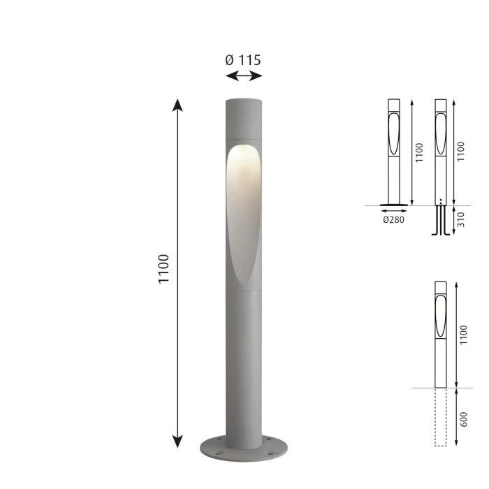 Diese Wegeleuchte ist mit einem Standrohr mit Fußplatte ausgestattet. Die Leuchte wird in der Nacht um 50% heruntergedimmt.