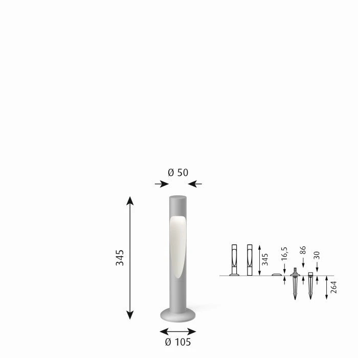 Mast mit Fußplatte: Für die Oberflächenmontage. Verwenden Sie das Installationskabel.