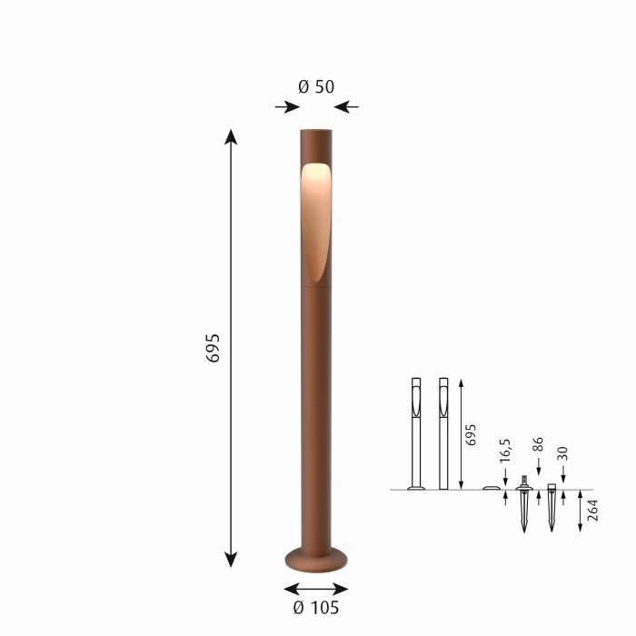 Mast mit Fußplatte: Für die Oberflächenmontage. Verwenden Sie das Installationskabel.