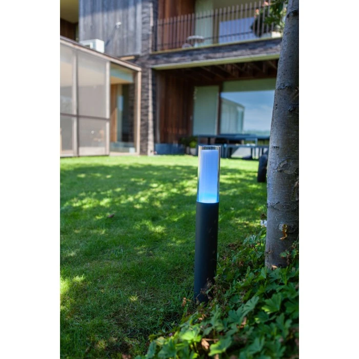 moderne LED-Wegeleuchte Dropa aus Aluguss, anthrazit, LED 9 Watt, 500 Lumen, Kelvin, IPIP44, RGBW, einstellbare Weißtöne und dimmbar, Bluetooth Mesh und Tuya kompatibel