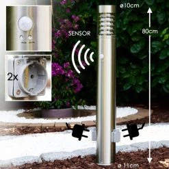 Hofstein Wegeleuchte Dakar Edelstahl, 1-flammig, Bewegungsmelder